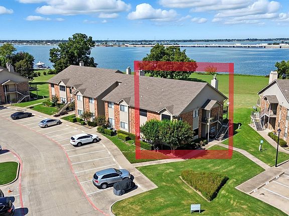 Experience lakefront living at its finest in this beautifully updated 3-bedroom, 2-bath condo overlooking Lake Ray Hubbard. The split-bedroom floor plan offers both privacy and comfort, while the open-concept design maximizes natural light and lake views. The living room features stunning floor-to-ceiling windows with motorized cordless shades, filling the space with light while maintaining convenience and style. The upgraded kitchen is a chef’s dream, complete with a gas stove, farm sink, quartz countertops, and a built-in wine bar with fridge. The dining area includes elegant built-in cabinets for added style and storage. The spacious balcony extends from the living room to the primary suite—both with direct patio access—perfect for relaxing or entertaining. The primary suite impresses with a custom California Closet system, renovated ensuite bathroom, and private attic access for extra storage. With serene water views as your backdrop, this home blends elegance, functionality, and the tranquility of waterfront living.