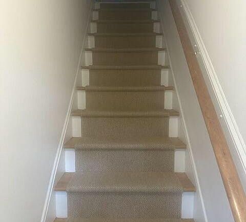 Modern flooringWarm hardwood floorsElegant stone countertopsBeautiful vanityRemodeled kitchenSleek white cabinetsStylish backsplash