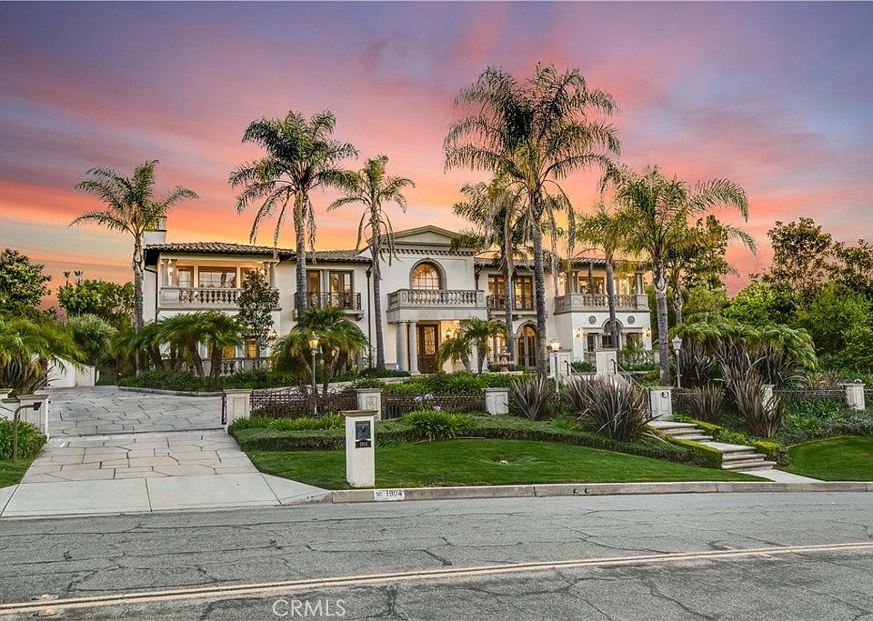 Every once in a while, you drive by a house that has such incredible curb appeal that you have to stop and stare. This is that house! Situated on a huge, flat lot, this custom built home features a classic exterior with a lavish interior, complete with marble floors, a grand, double staircase and coffered ceilings. The lower level includes a spectacular great room with gourmet kitchen and family room with fireplace. The formal dining room is just across the entry and features arched French doors looking North. The extraordinary, formal living room has a two-story, coffered ceiling, a magnificent fireplace and Palladian door leading out to the spectacular yard with pool, spa and cabana with lushly landscaped grounds. Downstairs boasts an exercise room (or 7th bedroom) with sauna, as well as a two additional guest suites. Upstairs, you’ll find four luxurious bedroom suites, each with an opulent bathroom, including the oversized primary suite. Last, but certainly not least is the coastline and city lights views, which are dazzling both day and night. A three-car, attached garage, elevator, solar panels, back-up generator and air-conditioning are just a few of the many luxurious amenities.