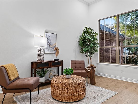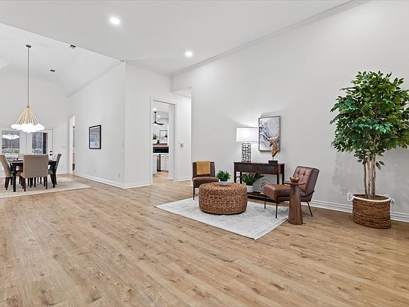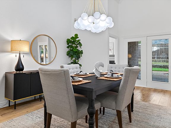 Completely renovated and beautifully finished, this South Flower Mound home offers elegant living in every detail. Gorgeous wood-like flooring, bright fresh paint, and updated fixtures flow throughout, giving the home a light and modern feel. The kitchen is a showpiece with abundant cabinetry, sparkling white quartz countertops, a striking black backsplash, and a huge walk-in pantry. It opens to a spacious living area centered around a stunning redesigned fireplace and a wall of windows overlooking your sparkling pool.