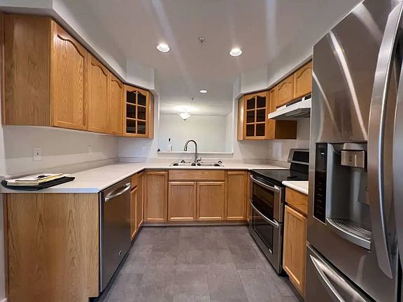 Hardwood floorsFormal dining areaLarge kitchenBrand-new stainless steel appliancesVinyl plank flooringDouble-door ovenAmple cupboards