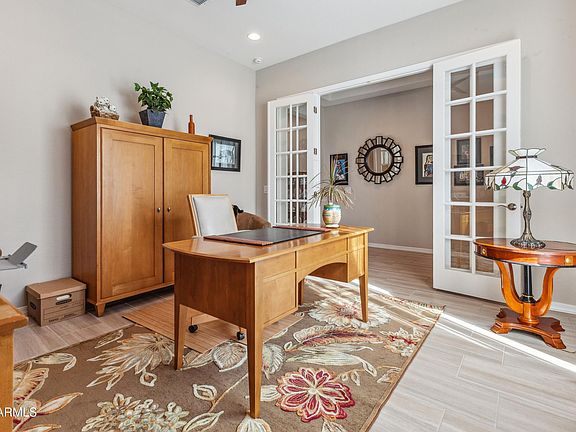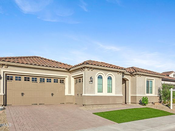 Located in the newer Mountain Side of Sun City Festival, this stunning VOYAGE model offers 3 beds, 3.5 baths, and a den w/ French doors. The kitchen includes upgraded, staggered cabinets, granite counters, center Island with STUNNING Pendent Lights, stainless-steel appliances and 36'' gas cooktop! The Great Room includes a built-in A/V wall.The two guest bedrooms have their own bathrooms and are on other wing of the home. The double garage includes upgraded electrical & hobby package and the Golf Cart Garage is accessible from the inside. The 10.125 kw PAID SOLAR SYSTEM covers 100% electrical use with rebate at the end of the year! Plus, PURONICS Whole House Water Treatment System. Enjoy the beautiful Award-Winning Sun City Festival Resort-Style Retirement Community!!