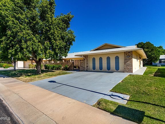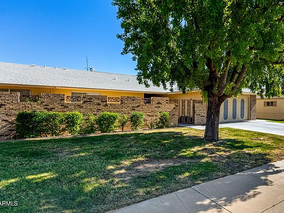 Welcome home to this beautifully remodeled 2-bedroom residence located in the desirable 55+ community of Sun City. This charming home features a private gated courtyard, extended 2-car garage, and a bright kitchen with stainless steel appliances. Enjoy tiled flooring throughout, abundant storage, and spacious walk-in closets. The inviting Arizona room offers the perfect spot for additional living or entertaining space. Step outside to a peaceful patio overlooking the lush greenway with mature trees. Conveniently located near the popular Marinette Recreation Center with easy access to all the amenities Sun City has to offer. Sun City offers many amenities and low taxes. Enjoy one of the 8 rec centers, 8 public golf courses, bowling, swimming pools, hot tubs, gyms, public and private lake, bocce, pickle ball and tennis courts. There is plenty of fun activities including jewelry making classes, wood working, stained glass, dance classes, water aerobics, softball or just catch a concert on the lawn amphitheater. Sun City is in vicinity of freeway access, shopping, restaurants, medical, Lake Pleasant Boat Marina, Peoria Sports Complex to watch great spring training games, casino's and State Farm Stadium.