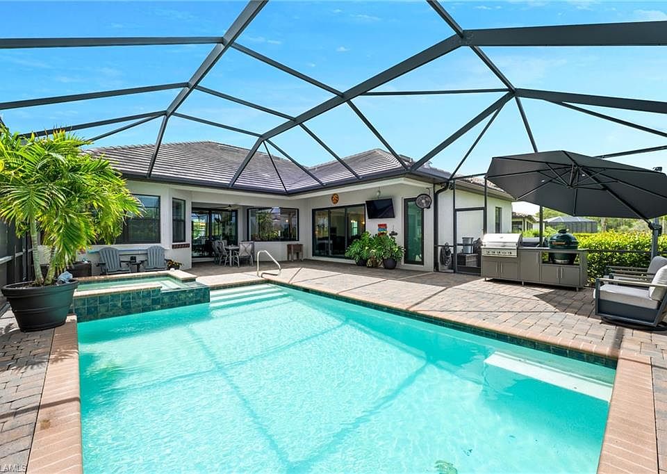 Motivated Sellers…Spacious, comfortable, well appointed 4 bedroom, 3 bath, saltwater pool, spa, extended lanai, 3- car garage home, situated on a private preserve! Extremely inviting with a very user-friendly floorplan, lots of natural light, volume ceilings, abundance of space. This executive home is great for family get-togethers, entertaining and making memories. Open kitchen, granite counter tops, GE Profile stainless steel appliances, wall oven & microwave, GE induction stove & under cabinet lighting. The refrigerator has it’s own R/O system. Lots of choices for dining together whether at the kitchen island, kitchen breakfast nook overlooking the pool or in the formal dining room! Large pantry with custom shelving, plenty of soft-close cabinets for storage. Large great room with surround sound for family gatherings with an abundance of views to the over-sized lanai & incredible saltwater pool with heater, automation & spa! Split floorplan which provides privacy and convenience for family and friends. Pool bath for easy access to the pool. The third bedroom has a built-in murphy bed for add'l space. Large master suite with easy, convenient access to the pool & spa. Granite bathroom vanities, separate sinks, separate soaking tub and shower! Neutral ceramic tile in the main areas and plush carpeting in the bedrooms, custom mirrors, window coverings, crown moldings, network pre-wiring in the bedrooms, smart water-heater, impact doors & all windows have 100% hurricane protection for peace of mind! This home also has solar panels with battery back-up for the entire house, providing security & a stress free environment when needed! The laundry room has a sink & plenty of storage, for making the laundry experience, a pleasant one! The garage is a handyman’s dream come true with an outrageous amount of storage for tools and so much more…all cabinets and battery back-up system are negotiable. All doors & windows view to the amazing lanai and custom saltwater pool with spa! Enjoy the abundance of lanai space for endless celebrating or quiet peaceful rest and relaxation! The backyard is fully fenced for added convenience & security! There are just too many options & upgrades that adorn this beautiful home! The Place at Corkscrew is one of the most highly sought after communities in Estero with an unapparelled amenity experience. Enjoy the resort lifestyle as soon as you enter the amenity center with a resort-style pool, water slide, spa, kids splash pad, basketball, pickle ball, bocce ball, state-of-the-art fitness center, volleyball tennis and so much! Plenty of options for the kids too... including splash pad, playground & dog park! Many dining options... whether at the Bar & Grill or at The Bar! Extremely active social calendar with all kinds of opportunities to meet people and make lasting friendships! Great location, just minutes to shopping, schools, airport, beaches and all that Southwest Florida has to offer!