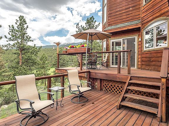 Peaceful Mountain Home with beautiful surroundings including meadows & lakes, mountains & amazing valley views. Custom home with artistic design, stunning roof lines, vaulted ceilings & lg. 2 story picture windows. Lg. Custom built-in cabinets throughout. Family room has lg. climbing wall. Expansive multi layered back deck with views West, South & East side. Private, Quiet setting to enjoy the colorful aspens, mountain air, sounds & elk. Main level open floor plan with large kitchen island, step down 2nd master bedroom/living area & 3/4 steam bath. Upstairs has 2 bedrooms & office with large master walk in bath. Lower level is partially finished with a full bath & walk out solarium. HOA includes access to fishing pond & walking access into National Forest. Home was designed with efficiency in mind including a Seffes heating system plus passive solar. Outside basketball goal for all to enjoy. This home is perfect for both full time or part time living for all the family to enjoy.