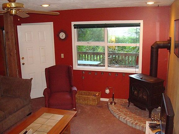 Enjoy privacy and peace with the sound of the river in this creekside cabin. You MUST go inside to see this fabulous getaway. This furnished cabin/home will be enjoyed for years to come. Cozy up to the new gas stove or submerge in luxury in a covered, open air hot tub and relax. Take the path to the creekside and common areas form back deck. Privacy on a dead end street. Convenience is yours with 2 full baths, 1 bedroom down and 2 up. Walk out to the upper balcony to see the mountain veiw from master bedroom.