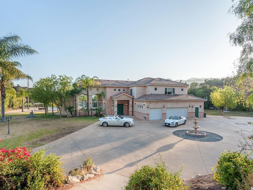 Magnificent Verdugo Woodlands contemporary estate is nestled at the top of a meandering tree lined drive beautifully poised on past 3 acres enclosed private grounds providing complete privacy and seclusion with serene canyon views. Custom 2002 constructed property features bright and spacious open floor plan excellent for entertaining and offers marble floored grand living room with a majestic 27-foot ceiling. Walls of windows allow abundant natural light & capture beautiful garden and pool vistas overlooking expansive deck perfect for entertaining large groups or quiet gatherings complete with resort style pool/Jacuzzi. This gated oasis surrounded by a natural garden with varieties of producing fruit trees creates a perfect retreat from everyday busy life. The marble topped bar is equipped with wine fridge and ice maker. The bright and well-appointed kitchen is cook's delight with extensive cabinetry, marble counters, walk-in pantry & cozy breakfast area with relaxing views of the garden. 4 additional bedrooms each w/ ensuite bathrooms, walk-in closets and elegant master suite with fireplace and balcony providing amazing sunset views are on the second floor. Private driveway, huge motor court, and three car garage. Welcome to your own County Club living!