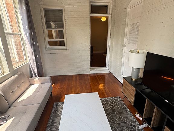 What a deal! OWNER WILL NOW PAY A HALF BROKER FEE! Eat-in kitchen with dishwasher, nice hardwood flooring, MASSIVE bedroom (or living room). Use the 3-season porch as a bedroom or living room! **3-season porch is not fully insulated or heated. Will need a space heater in winter. The price definitely reflects the quirkiness; it's an OUTSTANDING deal! Heat and hot/cold water are included in the rent. Parking may be available for rent behind the building. Laundromat is across the street. A half-month broker fee applies (and half-month security deposit). Contact Dan, thank you! Thank you! 12 months starting 9/1/25