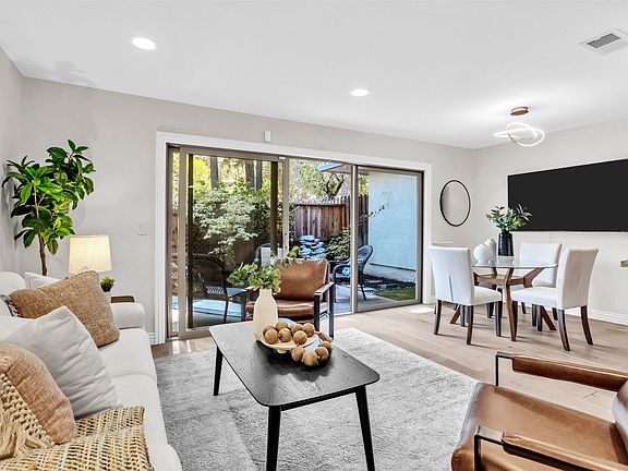 Welcome to your serene retreat in the coveted Skywest community, where tranquility meets convenience. Just minutes from beautiful downtown Walnut Creek, this exceptional townhome offers an unmatched lifestyle experience. Your journey begins at the charming, fenced entrance patio, providing privacy and a warm welcome. Inside, the renovated kitchen features stunning granite countertops, contemporary cabinetry, and designer lighting, seamlessly connecting to the dining space. Imagine entertaining loved ones on the expansive, lush patio adjacent to the family room—perfect for entertaining or relaxing on warm evenings. Recently updated with a new HVAC system, energy-efficient dual-pane windows, garage door, and a newer water heater, this home ensures year-round comfort and efficiency. Upstairs, you’ll find two luxurious bedroom suites, each with private full bathrooms, complemented by a convenient half bathroom on the main floor. The garage laundry setup includes a washer and dryer, while updated flooring throughout the lower level adds elegance and contemporary design. Enjoy exclusive access to greenbelt spaces, tennis courts, a clubhouse, and a sparkling community pool—perfect for sunny days. This move-in ready gem awaits your personal touch and won't last long!