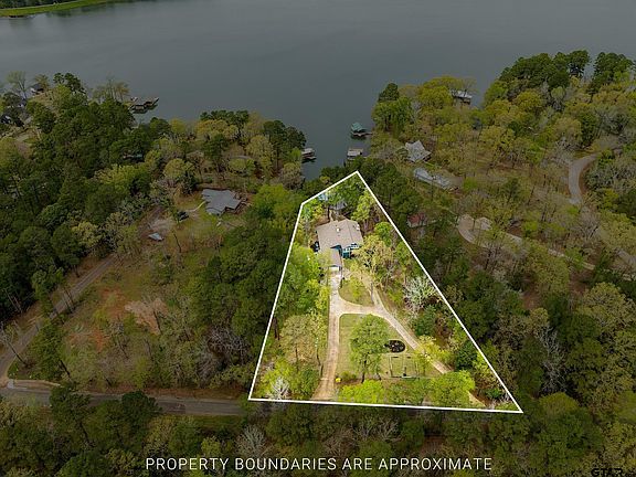 Major Price Improvement due to family relocation needs! Escape to the beauty of East Texas with this waterfront retreat on Lake Jacksonville! Situated on a tree shaded lot with an impressive 183' of shoreline, this 3 bedroom, 2 bath home embodies the perfect blend of comfort & luxury. The property is fully fenced & secured by gated entrances, ensuring both privacy & peace of mind. A graceful concrete circle drive welcomes you, leading to the entrance of this idyllic lakeside property. The 3975 sq. ft. home's recent updates include exterior & interior doors, luxury vinyl plank, windows, completely updated bathrooms & kitchen, electric panels, light fixtures, roller shade window coverings, water heaters, fresh paint inside & out, gutter guards & new sprinkler system for beautifully landscaped yard, complete with zoysia sod! Step inside & be greeted by restored brick floors & large great room complete with a gas log fireplace & a captivating wall of windows that showcase breathtaking views of the serene lake. French doors open to deck lakeside, with the option of a retractable awning. Dining area & living area are combined for ease of entertaining & enjoyment with friends & family. The beautifully updated kitchen and cozy keeping room w/FP are the heart of the home. Indulge in the beauty of nature from the comfort of the sunroom, surrounded by walls of picture windows that bathe the space in natural light while offering vistas of the picturesque landscape. HUGE master bedroom suite upstairs (can be converted to bunk room) has 3 closets & opens to private deck with amazing lake views. Tons of storage w/ 2 rooms off garage & walk-in attic. Rain or shine, rest assured knowing that a Generac generator is ready to provide power, allowing you to relax and enjoy the comforts of home no matter the weather. A boathouse built in 2021, set back from main lake wave action, provides easy access to fishing, boating, kayaking, & more! Embrace the tranquility lakeside living brings!