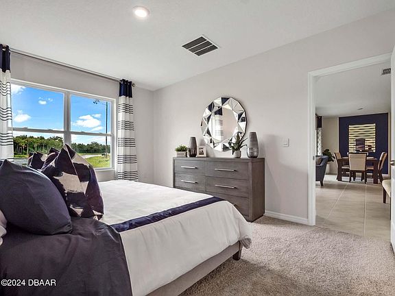Oak Leaf Preserve presents the Cali. This all concrete block constructed, one-story layout optimizes living space with an open concept kitchen overlooking the living area, dining room, and outdoor lanai. Entertaining is a breeze, as this popular single-family home features a spacious kitchen island, dining area and a spacious pantry for extra storage. This community has stainless steel appliances, making cooking a piece of cake. Bedroom one, located in the back of the home for privacy, has an en suite bathroom with a double vanity, spacious shower/tub space as well as a spacious walk-in closet. Towards the front of the home two additional bedrooms share a second full bathroom. Across the hall you will find a fourth bedroom. *Photos are of similar model but not that of exact house. Pictures, photographs, colors, features, and sizes are for illustration purposes only and will vary from the homes as built. Home and community information including pricing, included features, terms, availability and amenities are subject to change and prior sale at any time without notice or obligation. Please note that no representations or warranties are made regarding school districts or school assignments; you should conduct your own investigation regarding current and future schools and school boundaries.*