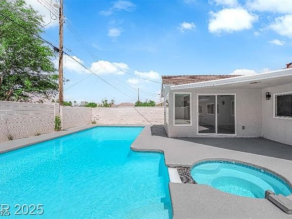 LARGE POOL & SPA! A STUNNING MID-CENTURY MODERN 1-STORY HOME W/ PRIVATE CASITA LOCATED IN THE HEART OF LAS VEGAS. This home's luxury design emphasizes it’s natural beauty. Main house is 3 Bedroom and 2.5 Bath. Separate guest house / ADU in the back with 1 Bedroom - 1 Bath and kitchen perfect for guests or renting out for extra cash. RV Parking area. High end upgrades throughout. Its re-designed open floor plan master chef’s kitchen is perfect for gatherings. Home features; New roof, spacious floor plan, separate living room, laminate hardwood flooring throughout, new showers, new bath cabinets, new light fixtures throughout, ceiling fans and new pool equipment. Kitchen island with custom cabinets, backsplash, quartz countertops with under-mount sinks, satin black finish plumbing fixtures and hardware, stainless steel & black appliances, front and back green landscape, massive circular driveway gives it a presidential feel. The driveway can fit at least 8 cars and much more.