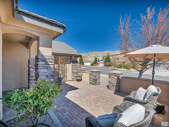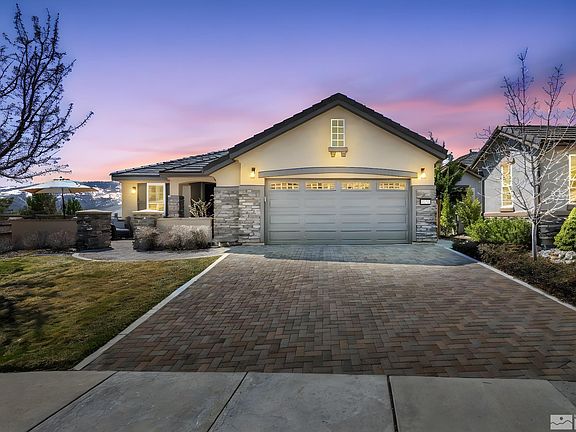 Nestled on the southern slope of Peavine Mountain, this beautifully maintained Alpine model home is situated in the highly sought-after 55+ community of Sierra Canyon by Del Webb. Positioned on a desirable corner lot in a quiet cul-de-sac with no through traffic, this home offers breathtaking views of the Sierra Mountains. Inside, you'll find a spacious and inviting 2-bedroom + office layout, featuring an open-concept design perfect for comfortable living as well as entertaining., This home features Luxury vinyl plank, coupled with wood flooring throughout most of the home and tile in the wet areas. The kitchen boasts granite countertops and a brand-new smart oven (installed in 2024) , complementing the modern yet cozy atmosphere. The hallway bathroom features a jetted tub, ideal for relaxing after a long day. Additional highlights include: fresh interior paint in 2025 & exterior paint in 2023, Paid-for solar (in 2024) for energy efficiency and brand new windows (in 2025) throughout. The home also offers fantastic outdoor spaces, including a private paver courtyard , paver driveway as well as paver covered back patio —ideal for relaxing and enjoying the scenic views. All appliances as well as snow blowers are included making this home move-in ready. Experience the best of active adult living in Sierra Canyon, where resort-style amenities, walking trails, and stunning natural beauty await.
