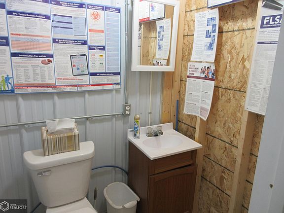 Over 1200 sq. ft storage building South of Algona. Installed radiant tube heater, LED lights, new wiring & outlets in 2019. Added a 1/2 bath in2019.