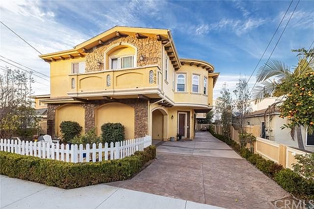 Welcome to this beautiful, detached 4 bedroom townhome built in 2016 located on a quiet one way street walking distance to award-winning Birney Elementary School. This townhome, lives like a single family home, offers an open living floor plan with high ceilings, a fireplace in the family room, and a gorgeous kitchen that features a generously sized island, high-end appliances, wood cabinets, marble countertops, a walk-in pantry, and plenty of cabinet storage. Just off the living and dining area you'll find two sets of sliding glass doors which lead to the spacious backyard perfect for indoor-outdoor entertaining. There is a half bath powder room downstairs for guests and a 2-car attached garage with epoxy-coated floor and plenty of room for storage. Head upstairs to find a second living space in addition to four well-sized bedrooms. The primary en-suite bedroom is spacious with an attached room well suited for a home office or home gym. The primary bedroom also features a fireplace, vaulted ceilings, and walk-in closet with built in dresser. The primary bath features marble dual vanities, a separate soaker tub, and an oversized shower. You will also find a jack n jill bathroom for two bedrooms plus a separate guest room with en-suite bathroom, and an upstairs laundry room. This home also features hardwood floors and wood shutters throughout, tankless water heater, and air-conditioning. Enjoy the quintessential South Bay living being located just over 1 mile from the beach and close to the award winning Redondo Beach schools, shops and restaurants.