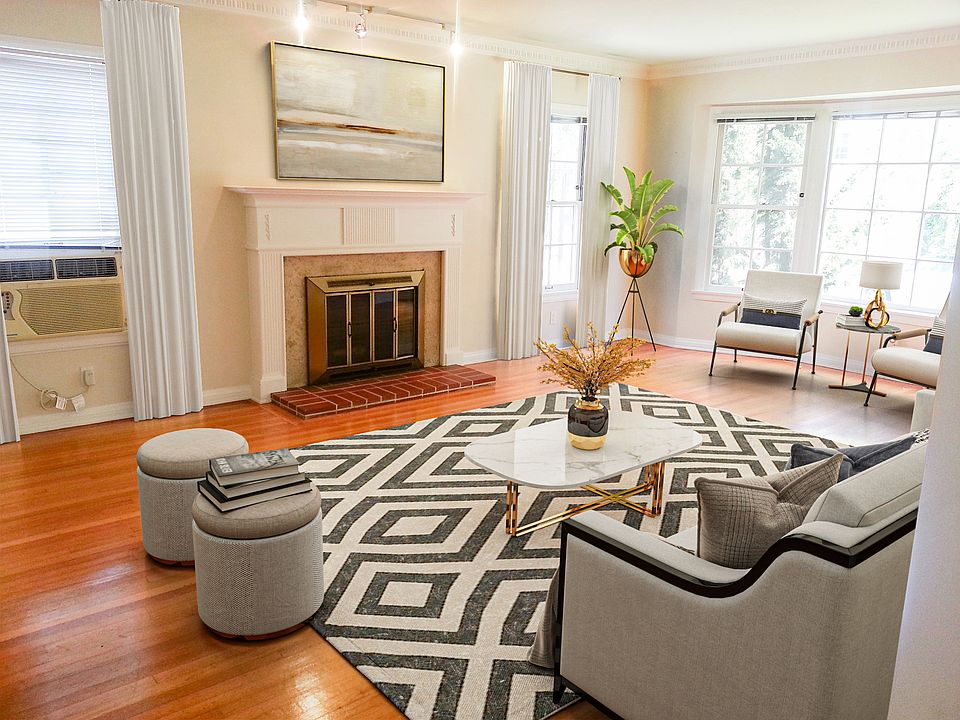 Step into sublime and charm! Immaculate, 2 beds, 1 3/4 bath Mid Century with den plus plenty of private backyard space located in the highly desirable Beverlywood Homeowner's Association ( armed patrol services). Natural light flows throughout the rooms of this spacious home with original hardwood floors. Kitchen offers all appliances, including incredibly well kept vintage O'Keefe and Merritt Stove. Even features retro kitchen tiles and garden window, plenty of cabinet space. Laundry room with washer and dryer. The formal dining room also offers a gorgeous chandelier and pocket doors to close off from kitchen and living room. Enjoy the comfort and warmth of central heat and a wood burning fireplace. AC throughout the kitchen, living room, den, and bedrooms. Bedrooms are large and offer plenty of closet space. Charming retro bathrooms with step in showers as well as one bathroom with tub. 2 gated parking spaces available in the back. Home Features: - Appliances Included:- Refrigerator, Stove, Stainless Dishwasher, W/D- Central Heat , A/C's- Wood Burning Fireplace- High Ceilings and Crown Moldings Monitored Alarm- Furnished/Not Furnished Option possible- Small pets considered - Owner pays for Gardening and HOA Due's. Backyard: Multiple fruit Tree's, Renter's Insurance Required. Non-smoking. Centrally located, close to Cedars, Beverly Hills, places of worship. Contact for a showing. Month to month term can be long term. This won't last long! owner pays gardener and HOA fees. Rent term negotiable. Month to month