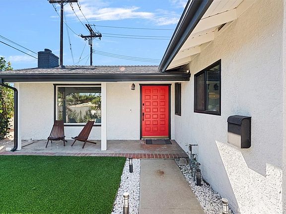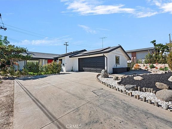 Experience the essence of Montebello, Italian for "Beautiful Mountain," at 1905 Merle Drive in Brighton Hills. This mid-century home masterfully blends clean lines, abundant natural light, and a meticulously reimagined open floor plan, creating a living experience that is both functional and beautiful. Upon entering, you'll be greeted by an open-concept space featuring concrete floors that optimize space and aesthetics. Custom wood paneled ceilings in the living room enhance the seamless flow throughout the home with a centerpiece fireplace. The kitchen serves as the heart of the home, boasting sleek quartz countertops, a wine fridge, and newer appliances. This culinary space not only meets practical needs but also elevates the cooking experience with modern elegance, ideal for entertaining or everyday living. Luxurious bathrooms with spa-like appointments redefine everyday routines, with the hallway bathroom featuring Keith Haring like-wallpaper. Each bathroom showcases luxurious fixtures, cabinetry, with the primary bathroom elegantly showcasing a tiled shower with glass enclosure, fostering a serene ambiance. The primary bedroom is a tranquil haven, featuring two closets and outdoor views to the back yard. This residence also boasts two additional spacious bedrooms, one of which can be repurposed as a den, movie room or office. A clean two-car garage provides convenient laundry hookups and a Tesla wall connector. Key features include paid-off solar panels, a newer pool, newer central air & heat system and turf grass which offers low maintenance. This property benefits from quick access to major freeways, shopping, dining, schools and entertainment options. Short drive to DTLA, with a Walk Score of 80, signifying a very walkable.
