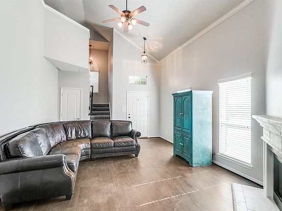 Beautiful brick home on quiet cul de sac with large fenced yard and 3 full baths. One bedroom and bath downstairs for potential multi generational living. Large living room with huge ceilings opens to kitchen and dining area. Every room repainted in October. All baths remodeled in October of 2025. Hardwood floors throughout except on the staircase which was carpeted last month. Marble ceramic tile in all baths. French doors in primary bedroom open onto large, oversized deck which is perfect for relaxing or entertaining! Utility room at top of stairs can be used for an office. Bedrooms are all oversized. Newer Air conditioner and roof is less than 5 years old. All chandeliers and decorative light fixtures will convey. Close to schools and FM1171.Move in ready! Garage has finished cabinetry and a work station for the handyman of the house! Laundry room is adjacent to the kitchen with additional shelving for pantry storage.