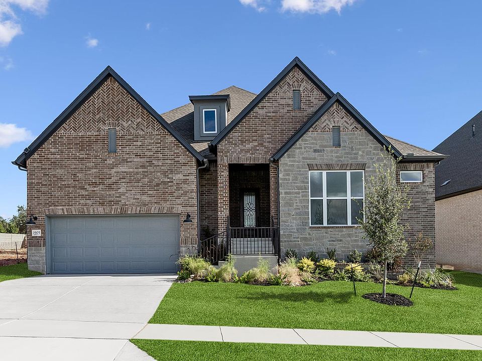 Step into timeless style and modern functionality at 1905 Morning Mist Drive, a thoughtfully designed single-story home featuring four bedrooms, three full bathrooms and over 2,800 square feet of finely crafted living space. The heart of the home is an expansive open-concept kitchen, dining and family room, a light-filled space grounded by warm wood-toned flooring and elevated by designer finishes. The kitchen stands out with its two-tone cabinetry, featuring soft light taupe uppers and perimeter cabinets, contrasted by a deep earthy gray island that brings richness and dimension to the space, offering ample prep room and casual seating for everyday living or entertaining. Gold cabinet hardware and fixtures add a touch of modern glamour, complementing the quartz countertops and classic white subway tile backsplash. Just off the main living area, a cozy sitting room provides a quiet place to unwind or connect, while a dedicated home office offers privacy and flexibility for work-from-home life. The Owner’s Suite is tucked away for serenity, featuring a spacious bedroom with a soaring cathedral ceiling that adds architectural drama and airiness. The en-suite bath includes an impressive walk-in shower, dual vanities and an expansive walk-in closet. Matte black hardware is reserved for the secondary bathrooms, creating a clean contrast and a subtle design shift that distinguishes each space. Three additional bedrooms are positioned to offer privacy and flexibility, ideal for family, guests or multigenerational living. Outside, a covered patio creates the perfect outdoor extension of the main living space. A three-car garage provides ample storage for vehicles, tools and hobbies. 1905 Morning Mist Drive is a home that lives as beautifully as it looks, where natural textures, elevated finishes and a smart floor plan come together in seamless harmony. Square Footage is an estimate only; actual construction may vary.
