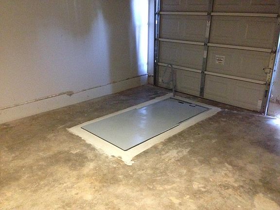 Below ground STORM SHELTER in garage.