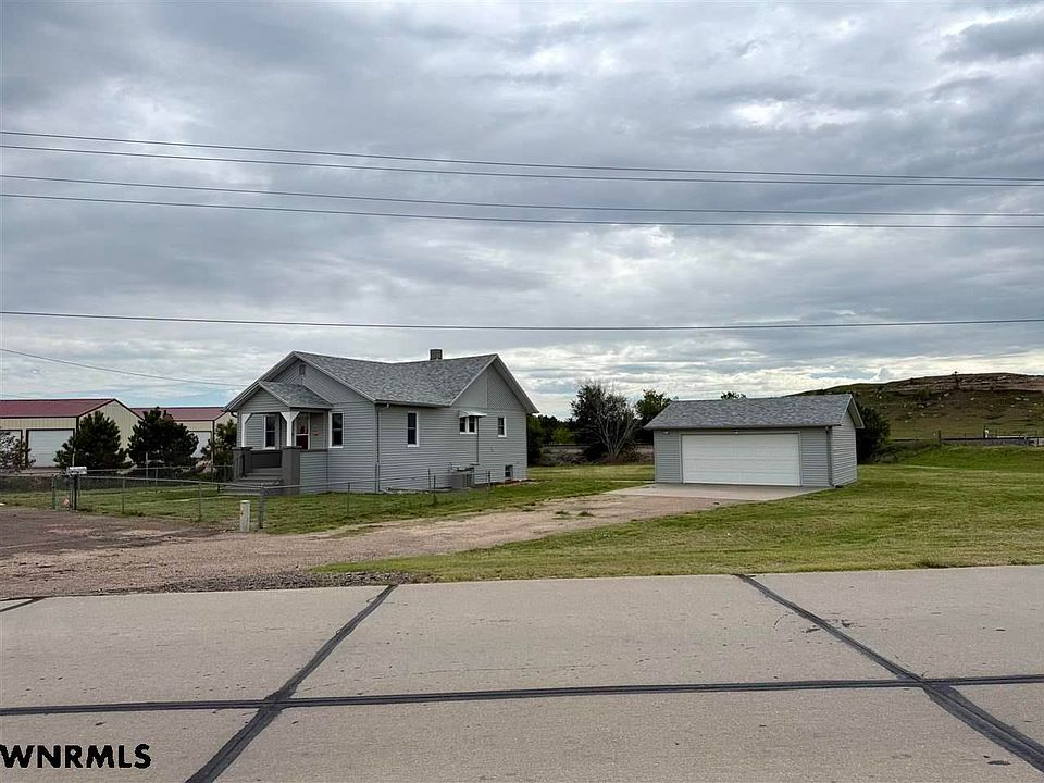 Adorable raised ranch home on .61 acres with a great bluff view! This 2 bed, 1 bath home with 2 bonus rooms in the basement has much to offer to it's new owner! A fenced front yard brings you to a great front porch and into the 936 sq ft main floor. Inside you'll be greeted by a nice-sized living room and dining room which is open to the kitchen through an arched opening. The kitchen comes with an electric range, refrigerator, portable dishwasher, and microwave. The first bedroom can be accessed from the living room and from the kitchen. Back through the dining room you will find a 3/4 bath with nice storage and the 2nd bedroom. The laundry area is conveniently located right off of the kitchen (washer and dryer included!). Heading down to the 702 sq ft basement there is a small living room area holding the furnace, storage room holding the water heater, and two bonus rooms. This property also features a huge backyard area, a detached 2 car garage and a storage shed with electricity and a small loft area.