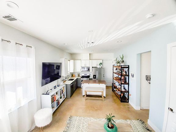 Modern 3 bed 2.5 bath home built in 2018 with no prior renters. A rare TWO rooftop deck home with downtown views and expanded outdoor living. Google Fiber connection in every room! Modern kitchen with Whirlpool stainless appliances. Large master bedroom shown with king has custom blackout shades, ensuite bath with dual vanity, ceiling shower, and walk in closet with ample storage. The second and third bedrooms easily accommodate queen beds, easily turn one into your home office as shown. High 10' ceilings throughout. Samsung Washer & Dryer included, top of line dryer features steam dry setting for never wrinkle clothes. Located in one of Austin's hottest neighborhoods on the east side with endless dining, shopping, and entertainment within walking distance. Polished concrete 1st floor, hardwood and Spanish tile on 2nd. Extremely low maintenance xeriscape front & backyard. Nest Thermostat. Security system and cameras installed, renter has option to continue service. Private driveway with side-by-side parking for two full size vehicles. Epoxy-sealed single car garage with storage racks and 8x8 outdoor shed that serves as extra storage. All furniture pictured is negotiable and can be included in rent. Renter responsible for water, electric, gas, and internet. No smoking allowed. Up to two small pets allowed with pet deposit and monthly fee.