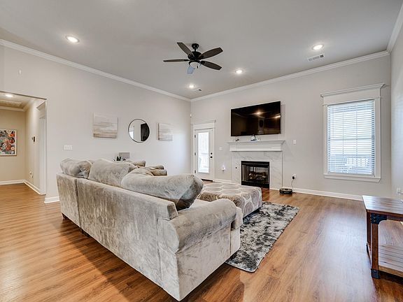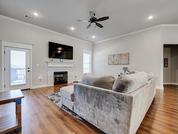Beautiful 4 bed/3 bath home w/ 3 car garage in Bent Tree Estates in Sherwood! The welcoming front porch boasts double wood & glass front doors that open into the foyer & formal dining room. The spacious kitchen has granite countertops, stainless steel appliances, center island, pendant lighting, and walk-in pantry. The wonderful open living room has tall ceilings, gas fireplace & access to the back deck. The large primary bedroom & bathroom are a wonderful retreat in the home. The bathroom features a walk-in tiled shower, soaker tub, separate vanities, & huge walk-in closet w/built-ins. Each guest room is a nice size w/big closets & shared bath w/double sinks, granite countertops & tons of storage. There is a fourth bedroom which also makes a perfect home office. A third full bath. And a great laundry room. The exterior features include a huge covered back deck w/beautiful views, outdoor ceiling fans, wood railing & staircase to access the backyard.