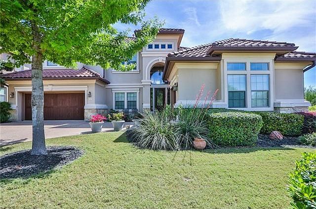 Award winning Florence floor plan with 4 bedrooms 3 1/2 baths and a private office located on the 14th green of the UT Golf Club. Panoramic hill country/golf course views. Premier lot with neighbors only on one side. The home boasts an open floor plan with an oversized kitchen overlooking the living area with soaring coffered ceiling. Main level master suite with spa like bath. Second story office nook, living area with wet bar open to covered balcony.