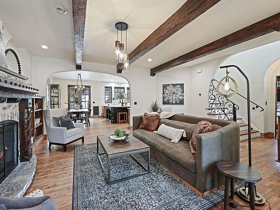 Historic Charm Meets Contemporary Elegance in the Heart of Boise in this 5 bedroom, 3.5 bath, home with 3-car garage and private studio Apartment/ADU. Interior highlights include custom Pella windows, hand-carved beams, whitewashed stone fireplace, hardwood floors, and elegant finishes. The chef’s kitchen boasts Bluestar Professional Series appliances, iconic Tiffany Blue 60" range, quartz countertops, butcher block island, and a smart tech hub. Main-level primary suite features spa-inspired bath, dual closets, and private laundry. Upstairs offers 3 bedrooms, double-vanity bath, and oversized laundry. Downstairs includes a Theater Room with Wet Bar, Game Room, large bedroom, full bathroom, and a separate entrance. Outdoor living shines with pergola, deck, oversized swim spa, gas line to grill, bistro lights, and manicured landscaping. Private studio Apartment/ADU with Kitchen, Bathroom, Laundry, and storage. A one-of-a-kind home blending elegance, comfort, and entertainment.