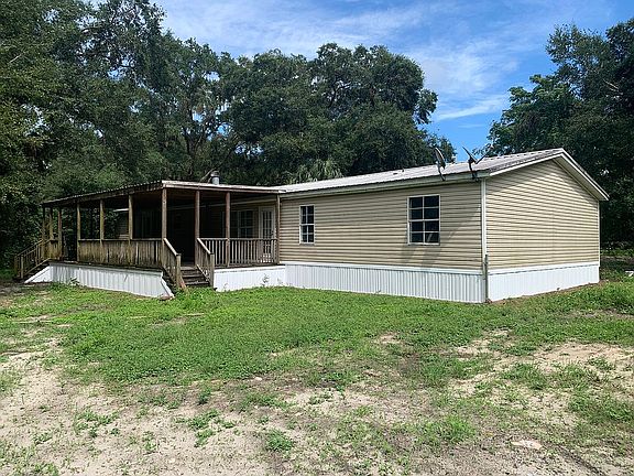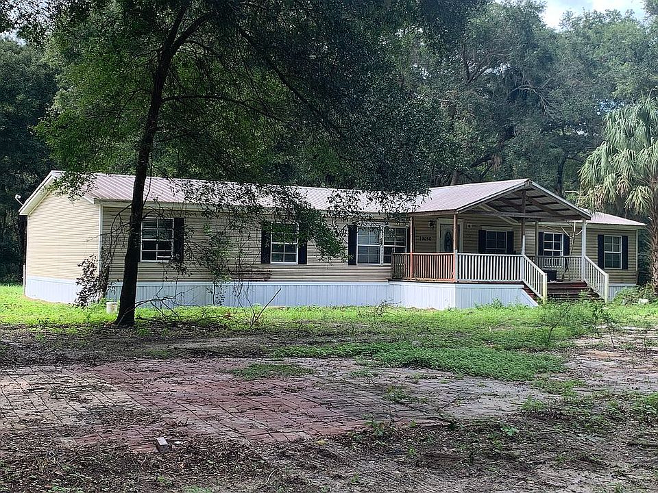 Doublewide mobile home on 5 acres. A rectangular lot, fenced. Home is 2,280 sqft, with 5 bedrooms and 3 full bathrooms. New A/C, ductwork, skirting, water heater, and well bladder tank. One 2-story outbuilding. This is a fixer-upper that is priced to sell. *Update property has been completely cleared and electrical work done. Call Chuck @ 352-817-2457.