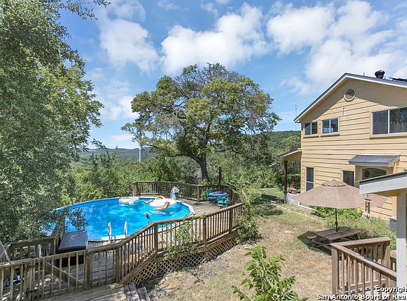 Views Views Views! Beautiful Hill Country home on private 5 acres. Open kitchen to dining area and family room. Formal dining room. Lots of windows! Perfect for entertaining. Master bedroom down. Secondary bedrooms up with with loft. Detached one bedroom Casita with full kitchen and bath. Above ground pool with decking. Pool house/Man Cave/She Shed with a/c. Reverse osmosis water system. Solar panels. 80x120 goat pen. 4H show animals allowed. No HOA! Minutes from downtown Helotes. Motivated seller!