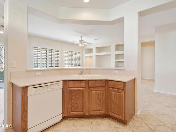 Welcome to Sun City Grand and this Desirable open concept Azalea model, spacious open great room, dining & kitchen which includes breakfast bar, Corian counter tops, pantry & all appliances plus shutters throughout these areas! Split floor plan, 2 bedroom, 2 bath and a den, Primary suite W/bay window, then into your bathroom w/large Corian shower surround plus extra spacious closet w/custom built storage. Large Extended length 2 Car garage is complete with built in sink & storage cabinets too. Low maintenance front & back yards are with auto water system plus extended back patio to relax and enjoy. Community Area offering loads of amenities like Golf, pickleball, swimming pool & spa, clubhouse PLUS it's close to shopping, dining & 303freeway too.