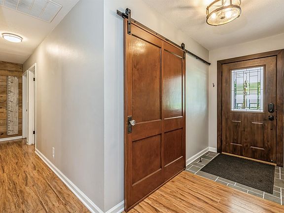 Outside, the sprawling grounds offer endless opportunities for enjoyment and function. A 12x26 animal barn with two stalls and a versatile potting/gardening/dog area cater to hobbyists and animal lovers alike. A sizable 30x50 shop boasts a dedicated 200-amp service, a concrete floor, a storage loft, and ample space for hobbies, storage, and even a hostable gathering space. Nature enthusiasts will appreciate the orchard trees (apple, peach, cherry), a large raspberry patch, and three dedicated strawberry beds. A landscaped fire pit invites gatherings under the stars, while approximately one acre of prairie/pasture and mature trees provide a peaceful backdrop. With minimal gravel, the balance of interstate and black top access with rural tranquility is hard to beat. This property offers not just a home, but a lifestyle—a rare blend of modern comforts and country living.
