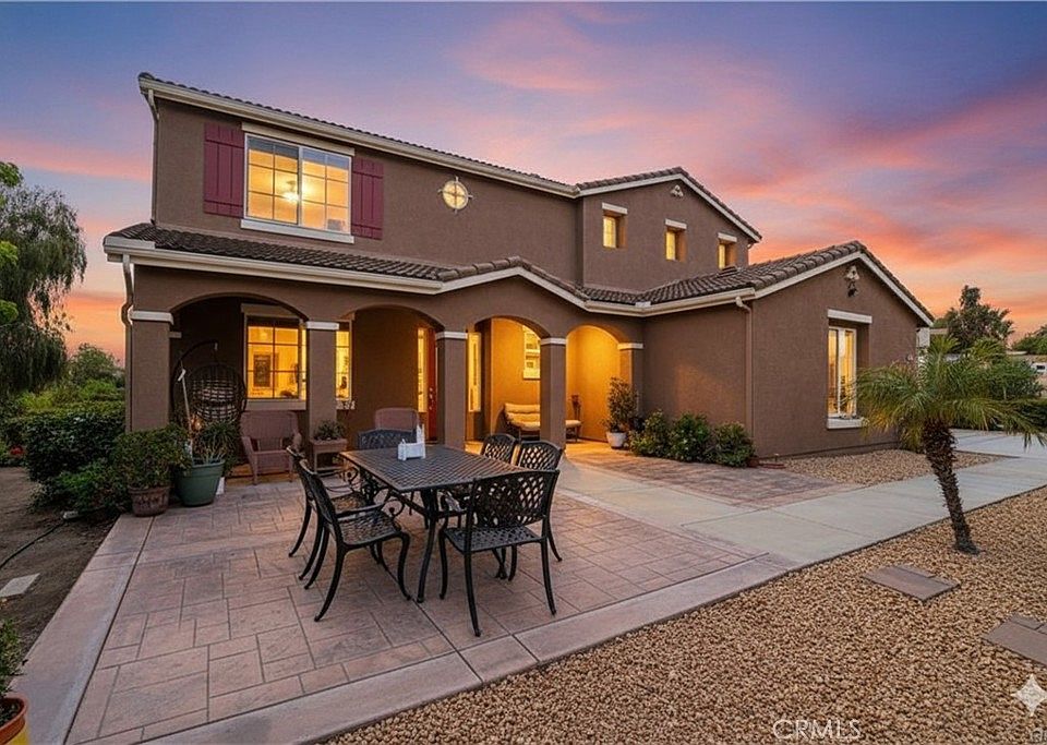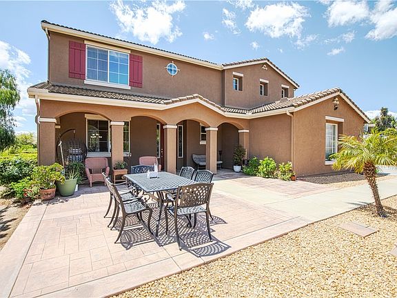For the first time in over two decades, a stunning 4-bedroom, 3.5-bath model home is available in the highly desirable Summit Community of Perris. Sitting on more than an acre of horse-zoned land, this home offers wide-open views, breathtaking sunsets, and endless possibilities for creating the lifestyle you’ve been dreaming of. Step inside to discover an inviting open floor plan featuring real wood floor, a cozy stone fireplace, and a kitchen designed for both cooking and entertaining with granite counters, stainless Whirlpool appliances, an 8-foot island, and a walk-in pantry. Upstairs, the spacious primary suite includes its own fireplace, dual walk-in closets, and a spa-style bathroom complete with a soaking tub and walk-in shower. Energy-efficient upgrades add even more value, including 36 paid-off solar panels, a newer A/C unit and water heater, and a smart irrigation system.