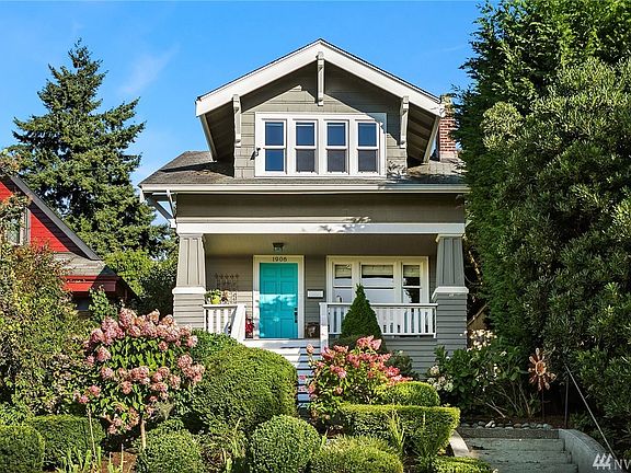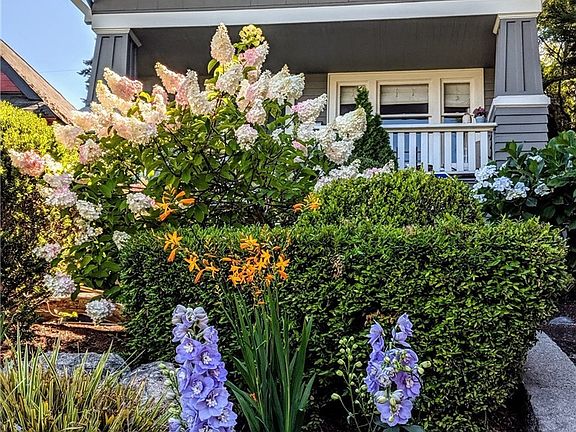 Stylishly renovated 1918 Craftsman with 1-car off street parking pad & west facing Puget Sound & Olympic Peninsula views. Oak floors; working fireplace; cove ceilings; french doors off dining to small back patio.. Large kitchen boasts 6 burner Viking gas range. 2nd floor offers new windows, 2 BR & lux BA w/marble floors. Closets/storage galore! Lower level bonus w/separate entrance & 3/4 bath is perfect 3rd BR, study, or short term rental. Take up to $2000 off your monthly mortgage!