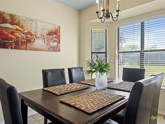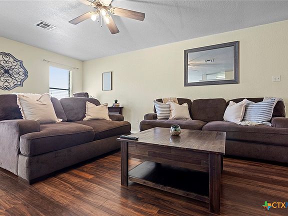 Welcome to Amethyst House, a well-maintained 4-bedroom, 2-bathroom home located in Killeen, TX south of I-14 Interstate. Designed with a functional split floor plan, this property offers both comfort and privacy. Each bedroom includes carpet flooring and ceiling fans, while the kitchen is equipped with a stove, refrigerator, and dishwasher. Washer and dryer hookups are also available for added convenience. The backyard features a small covered porch and a fenced yard, providing a private outdoor space to enjoy. Centrally located, this home is just minutes from Fort Hood, Texas A&M Central Texas, and Killeen Regional Airport, as well as a variety of shopping, dining, and everyday essentials. The generous living area extends to offer a flex space at the rear of the home currently used as an office set up. The open layout, however, provides flexibility for any Buyer's needs. Large windows pour natural light in to the back of the home, illuminating the dining and kitchen areas as well. Both the primary and secondary bathroom vanities offer extended counter-tops and cabinet storage below to accommodate all essentials.