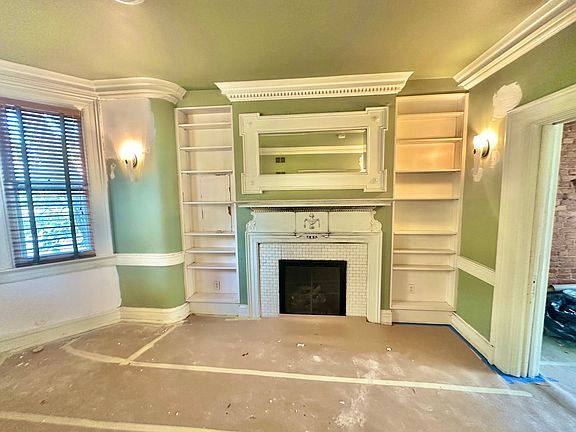 Carpeted large bedroomsNew flooringExposed brick wallDecorative fireplaceStained glassCarved woodOpen concept