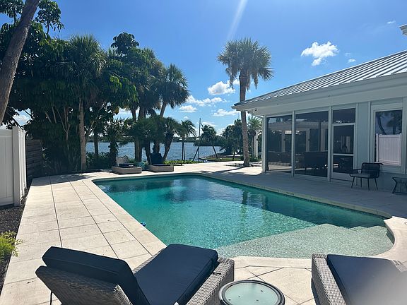 Includes pool, grill, large outdoor screened living space, private dock, private beach access. Front of house faces the Gulf, back of house is on the Intercoastal Waterway.
