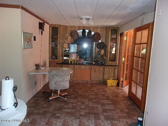 CAMP VERDE Investor/Handyman Special! Rural living. This property has potential, inside and out. Some updating has been done. 3 bedroom home with addition, 1 car detached garage. Family /bonus room with French doors leading to dining/kitchen combo, built in hutch. Individual AC, pellet stove. Block addition has a concrete floor and could be used for hobby, fitness, music room. Master has long closet and bath with a walk-in shower. Plenty of room for toys or garden. Property will need a new well.
