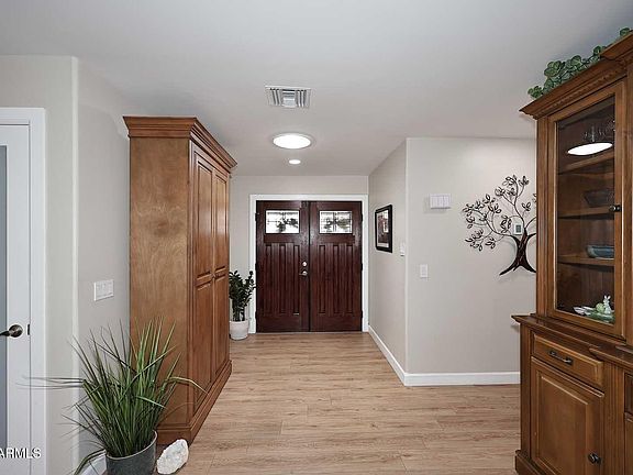 Beautiful single level home in Tempe, AZ. Complete Remodel was completed in 2023. Plantation shutters throughout the home. This included a brand new kitchen including cabinets, lg kitchen island w/ granite counters, all new appliances, with induction stove/range & microwave. A new sliding glass door to enlarged covered patio with fans & misting system. New luxury vinyl flooring & baseboards throughout the home. Remodeled bathrooms with new tub/shower, new plumbing, new cabinets & granite counters. New walk in closet in primary bedroom. Fresh paint both inside and out. All AC duct work was replaced with new flex duct & returns. Newly installed RV hookups with sewer connection and 30 amp outlet. Retractable patio shades with remote control. HVAC was new in 2021. New 16' RV gate Corner Lot