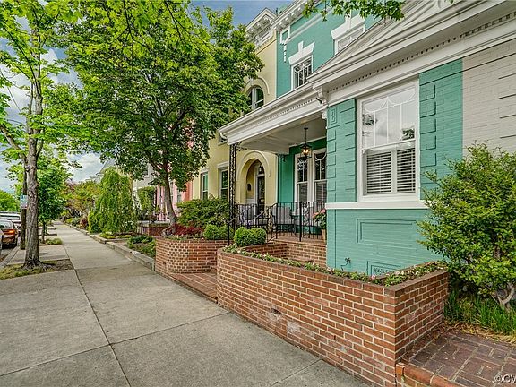 Situated on one of the most beloved blocks of Hanover Avenue in the heart of The Fan, this historical rowhome has many captivating features that will have you falling in love & ready to call home. Walking up to the front, you will notice that this home offers a well-appointed front-covered porch w/ wrought iron railings. Inside, you will love all the details that are reminiscent of this historical home....pine floors, moldings, fireplaces, pocket doors, & tall ceilings. Large entry foyer w/coat closet that offers immense storage under staircase, formal living & dining rms, family rm w/ fp & built in bookcases & door to side porch. Eat-in kitchen w/ tile floors, granite counter w/ bar seating, stainless steel appliances include 6 burner wolf range. Upstairs, the primary suite offers walk in closet & bath w/large walk in shower & separate vanities. 2 additional bedrooms & fully renovated hall bath. Rear bedroom offers access to rear balcony overlooking the most enchanting courtyard garden as well as rear stairs to first floor. Other noteworthy features include rare center staircase, plantation shutters, skylights, walk out basement, & gorgeous light filled home throughout the day!