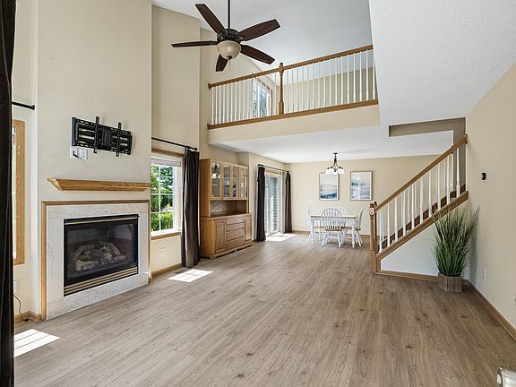 Immaculate 2BD/2BA end unit townhome in the heart of Hudson! This bright and spacious East facing unit is filled with tons of natural light and features an open-concept living room with vaulted ceilings, an open staircase, and a cozy gas fireplace. The upper level offers two generously sized bedrooms, convenient laundry, and a versatile loft—perfect for a home office or flex space. Recent updates include NEW luxury vinyl tile on the entire main level, NEW carpet throughout, new furnace (2024), new toilets, and a new garage door. The insulated 2-car garage offers built-in shelving for added storage and the private patio is perfect for entertaining! Tucked away on a quiet, no-through street and just steps away from walking trails, I94, and shopping/dining! Quick close possible! Don't wait, schedule your showing today!
