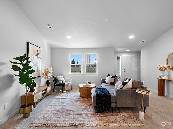 The 1148 square foot Alderwood has long been a favorite for those seeking both comfort and function in a modestly-sized single-level home. High vaulted ceilings add volume to the already expansive living room, overlooked by the open kitchen, and adjoining dining area. The generous main suite boasts its own private bathroom and substantial oversized closet. The additional two bedrooms are equally sizeable and share a second bathroom. A large laundry closet offers valuable storage space to this incredibly efficient home. Photos are of similar home