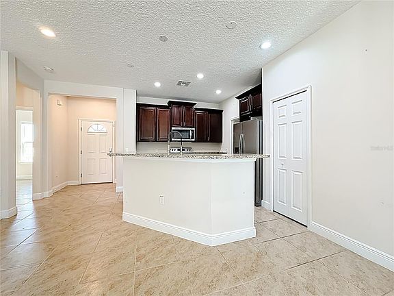 An incredible opportunity to own a thoughtfully crafted one-story home that blends modern comfort, functionality, and timeless design. This spacious 3-bedroom, 2-bath residence features an open-concept layout ideal for both everyday living and entertaining. The bright and airy living and dining areas flow seamlessly into a contemporary kitchen equipped with quartz countertops, stainless steel appliances, ample cabinetry, and a convenient pantry. The split floor plan offers enhanced privacy, showcasing a generous owner’s suite complete with a walk-in closet, dual-sink vanity, and a large walk-in shower. Secondary bedrooms are well-sized and versatile, perfect for family, guests, or a home office. Additional highlights include tile flooring throughout, ceiling fans, a dedicated laundry room with garage access, and an architectural shingle roof for long-term durability. Enjoy Florida living on the covered lanai, perfect for morning coffee or evening gatherings. Nestled in the desirable Village VIII of Poinciana, residents benefit from access to the Association of Poinciana Villages (APV) amenities, including parks, pools, and recreational facilities—all within minutes of top-rated schools, shopping, dining, medical centers, and major highways connecting to Kissimmee, Haines City, and beyond. This home perfectly balances affordability, quality, and location—making it an ideal choice for modern living.