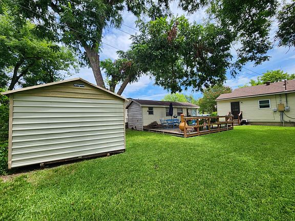 This adorable well-maintained, one-story home is ready for you to enjoy! Cozy and Unique floorplan with vinyl plank floors and tile throughout, 2 bedrooms, 1 full bath with Tub/shower combo, and a long driveway on the side of the house. Custom built wooden deck at the front entrance for great curb appeal. Kitchen opens to the dining area/family room with lots of storage space. The family room has an abundance of natural light with lots of windows. Spacious, private, backyard with a large deck, mature trees and a large shed for storage or a workshop. Fantastic yard for entertaining! Convenient location close to town & I-35. Foundation work needed please request bids if interested, home can sell FHA 203k as an option. No Survey.