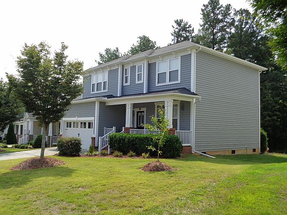 This beautiful home is in Wyndmoor at the Park subdivision in RTP. The home features an open floor plan with a beautiful wood floor, a family room with a gas log fireplace, stainless steel kitchen appliances & Corian countertops and a spacious master bedroom with a huge walk-in closet. Master bath with jacuzzi tub, separate walk-in shower, and double sink vanity. Loft with sitting area and home office. 2-car attached garage. Huge patio with gas grill & propane tank. Covered front porch. The house backs into a pond and tall trees.