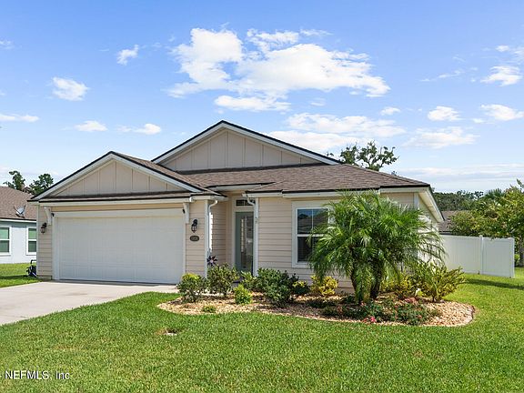 The open-concept living and dining area connects to the kitchen, perfect for family gatherings. Step through the sliding doors to a Florida-style covered patio and a large, fully fenced yard. Situated on a corner lot in one of Clay's top subdivisions,enjoy navigable access to the St. Johns River and a dock on Peters Creek. No CDD, low HOA.