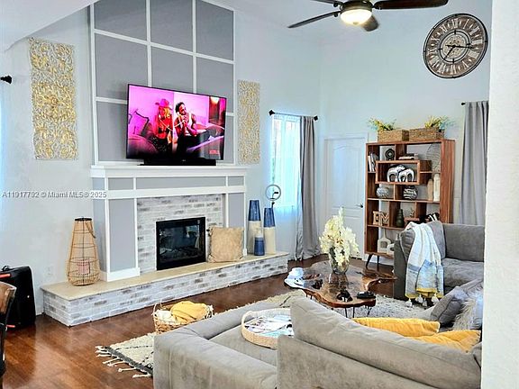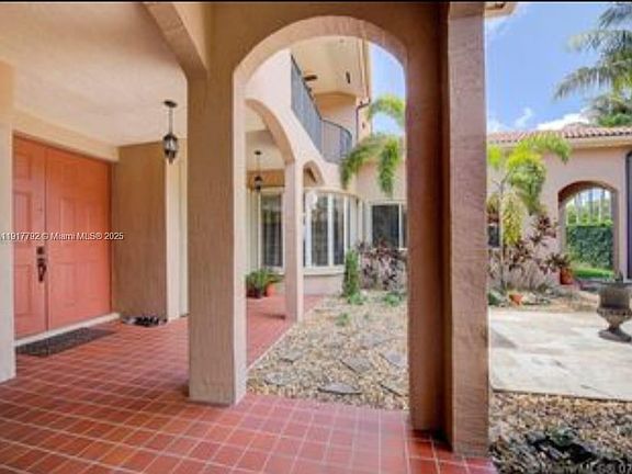 Beautiful 2-story home with 5 bedrooms + a private in-law suite with separate entrance, perfect for guests, office, gym, storage, or extra income. Enjoy a huge saltwater pool with tiki, oversized patio for parties, waterfall pond, and two additional patio areas. Plenty of natural light, shutters throughout, 2025 A/C, wood laminate floors in excellent condition (extra boxes included), 3-car garage + driveway for 3 more cars, and a serene canal view where you can fish and enjoy wildlife. The property includes a full home water-filtration system, abundant windows, and great outdoor space. Located in a quiet community with security patrol every 5 minutes, playground and green areas, picnic space, and multiple tennis courts. Close to everyday conveniences: Walmart, Publix, CVS, Walgreens, Sedano’s, Lowe’s, Home Depot, restaurants, parks, and 5+ schools nearby. Property leased through August 2026. Ideal investment opportunity!