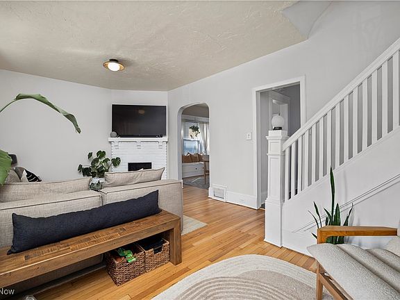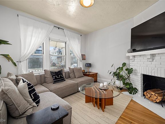 Charming Detroit Shoreway Colonial! Built in 1910, this 3-bedroom, 2-bath home blends historic character with thoughtful updates. Step onto the covered front porch, perfect for relaxing outdoors, sipping a drink, or watching the world go by. Inside, the entry flows directly into a bright living room with hardwood floors and a cozy brick fireplace. The sun-filled dining room features built-in cabinets and a window seat. The refreshed kitchen offers stainless appliances, tile backsplash, and vinyl flooring. A full bath is conveniently located on the main level. Upstairs, two spacious bedrooms, a stylish updated full bath, and a covered balcony overlooking the backyard create a comfortable second-floor retreat. The third floor offers a home office and the third bedroom, perfect for flexible use. A partially finished basement provides additional living or storage space. The private backyard and detached 2-car garage add convenience. Recent upgrades include updated windows, new roof on the main structure and front/back porches (June 2024), new water heater (2025), and whole-home water filtration system. Walking distance to Lake Erie, Edgewater Park, the Gordon Square Arts District, and local shops and dining, this classic Colonial is a fantastic opportunity to own a piece of Cleveland’s vibrant West Side!