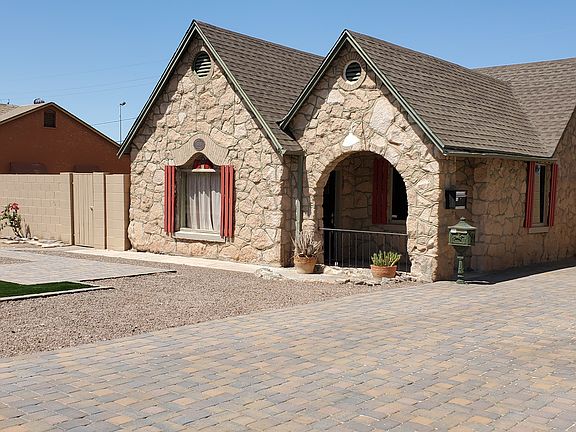 Encanto / Villa Verde Historic District English stone cottage. Beautiful Vintage House with 3 bedrooms and 1 large fully remodeled bathroom with walk-in shower. New Kitchen with stunning granite countertops, new stainless steel appliances and white shaker cabinets. Large living room with fireplace. Formal dining room with double french doors leading out to a private 600 square foot flagstone patio with large stone fireplace. Wood plank ceramic tile floors throughout home. There is a separate utility room with washer and dryer and a large storage unit in back yard. Excellent location very close to downtown and a short bike ride to Encanto Park and the 7th ave shops and restaurants.